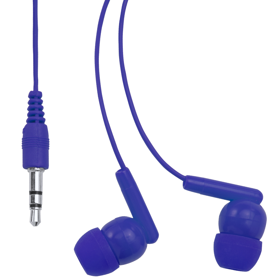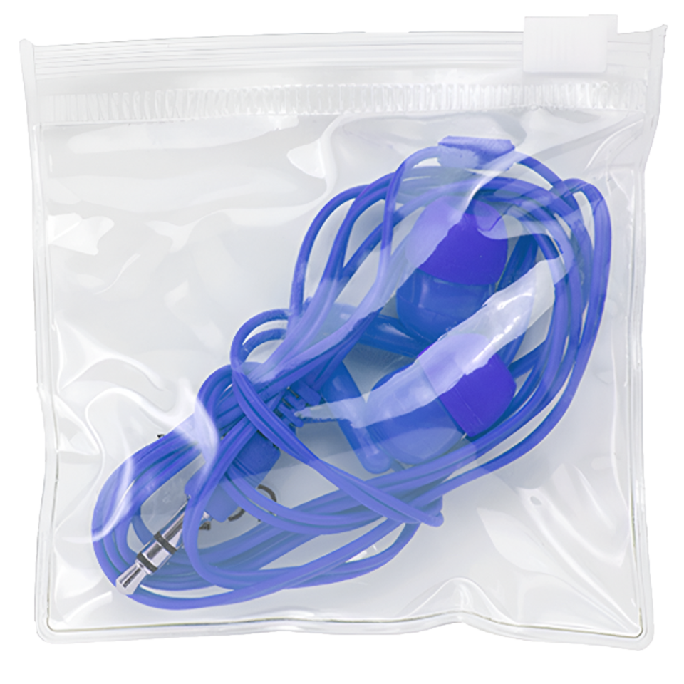 Auriculares de cable presentados en práctica funda transparente de PVC con autocierre.