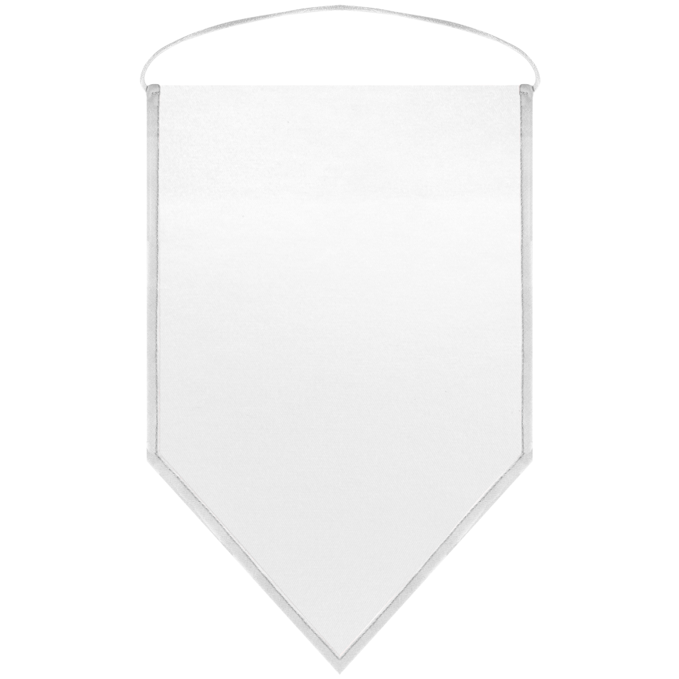 Banderín rectangular con final triangular, anchos de 9cm, 14cm, 18cm, 23cm y 25cm con cuerda y fieltro en su interior para darle cierta rigidez y de acabado semi-mate.
