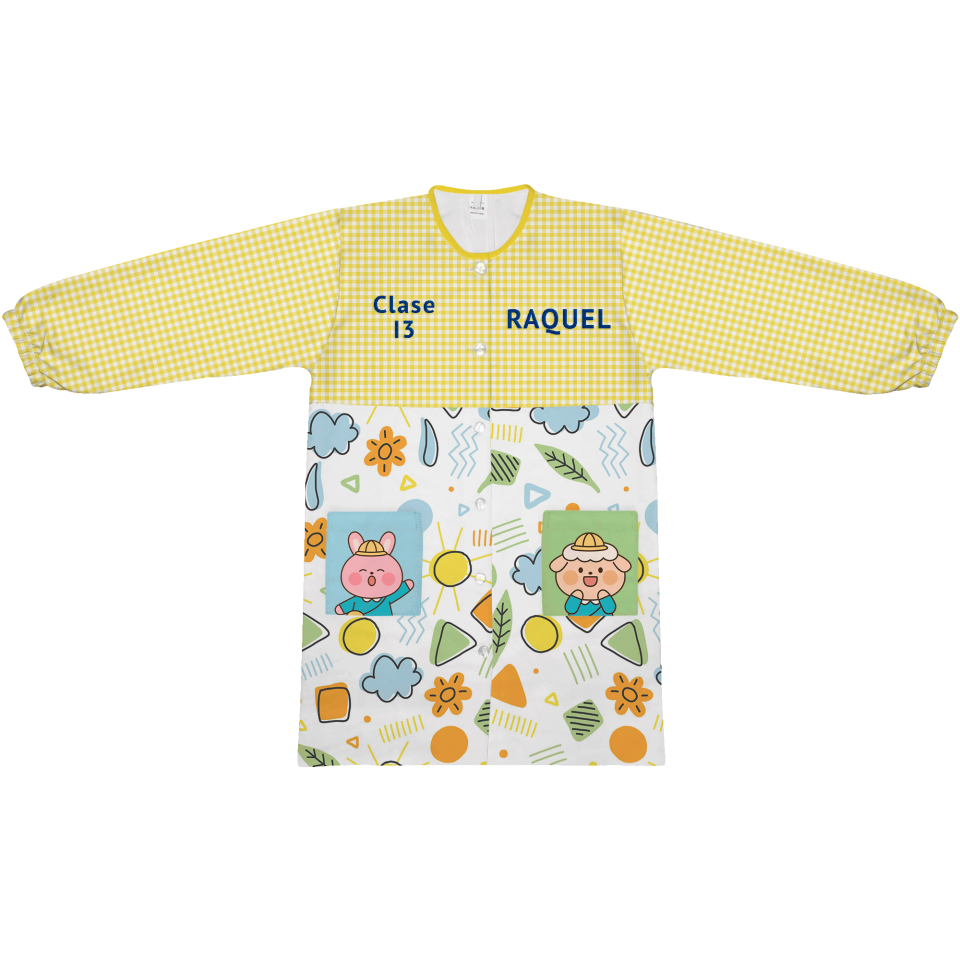 Bata escolar con cierre con botones, dos bolsillos en la parte delantera y goma en los puños