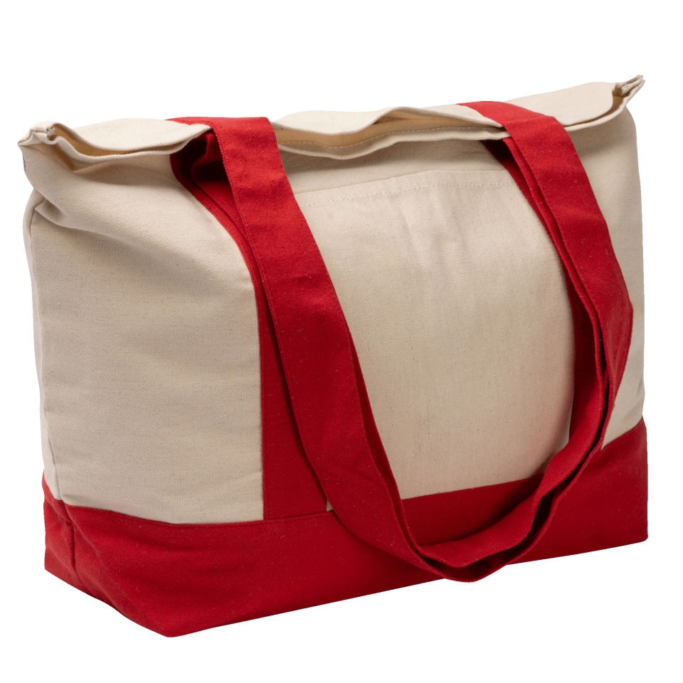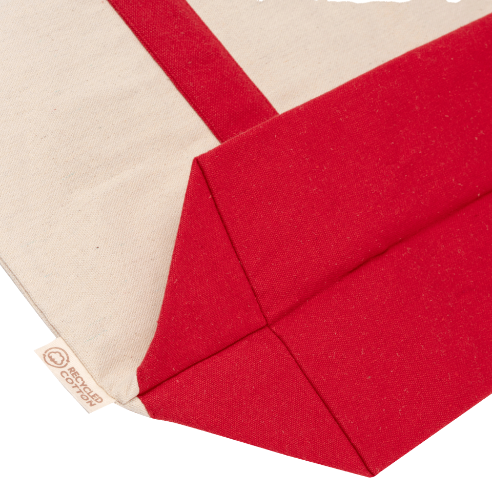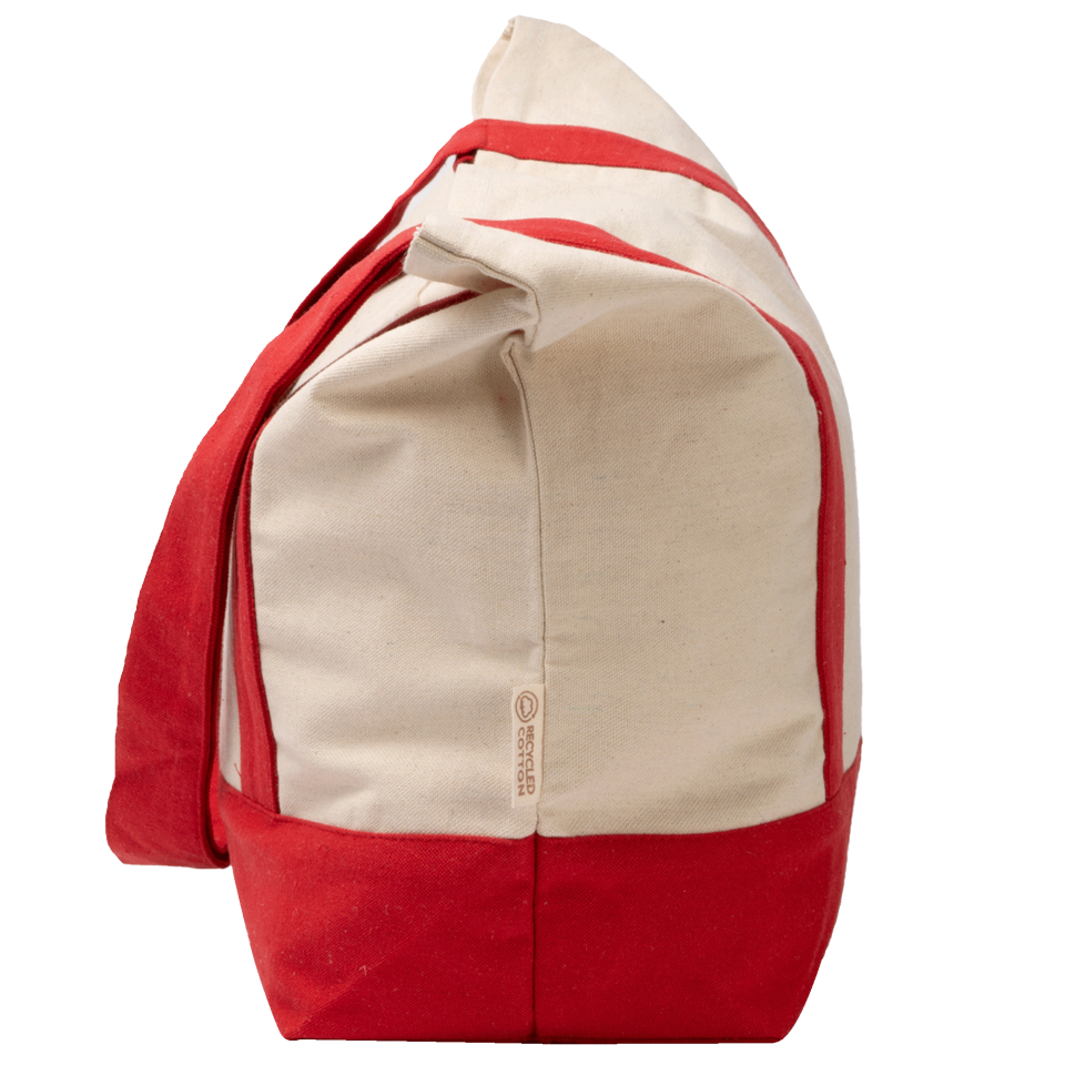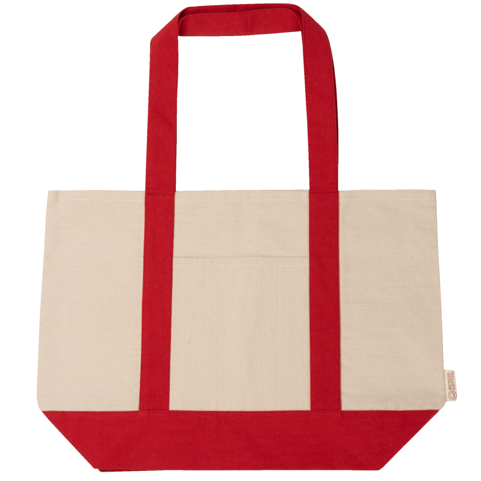 Amplia bolsa de playa de algodón reciclado de 280 g/m2. Asas reforzadas de 65 cm