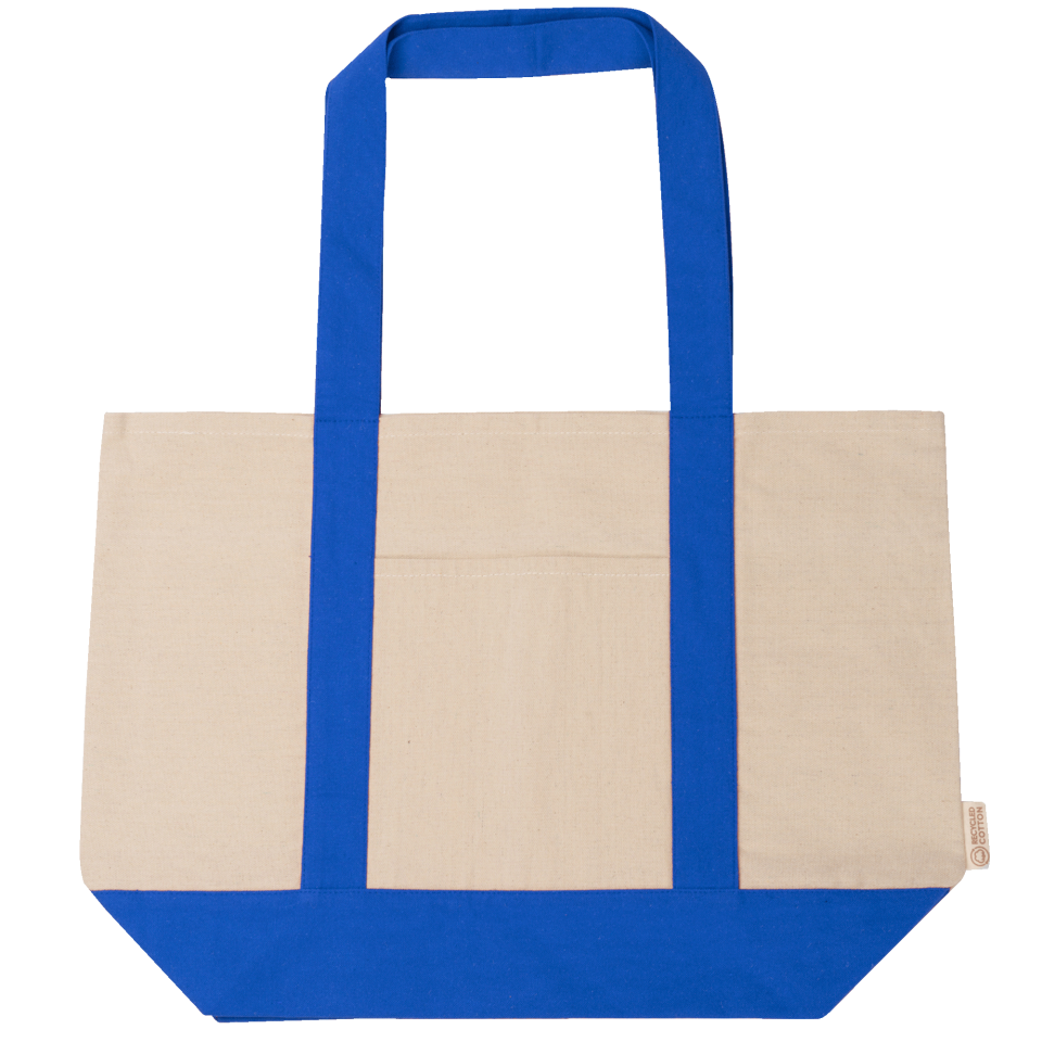Amplia bolsa de playa de algodón reciclado de 280 g/m2. Asas reforzadas de 65 cm