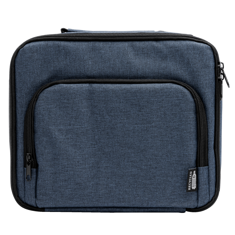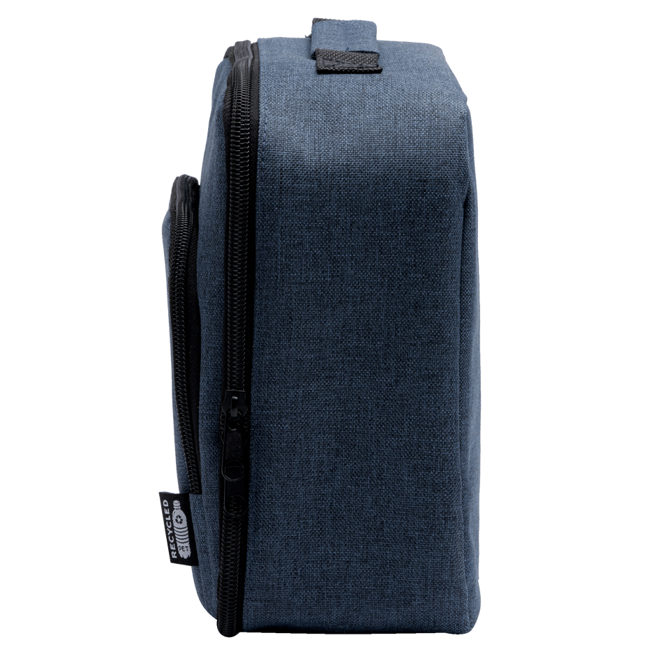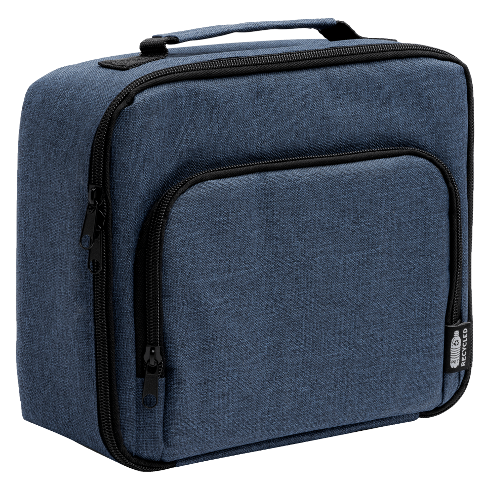 Nevera de poliéster reciclado RPET 600D que cuenta con un práctico asa de transporte