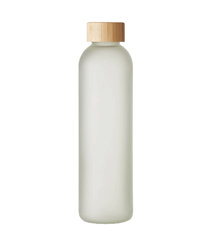 - Botella de vidrio con tapa de bambú