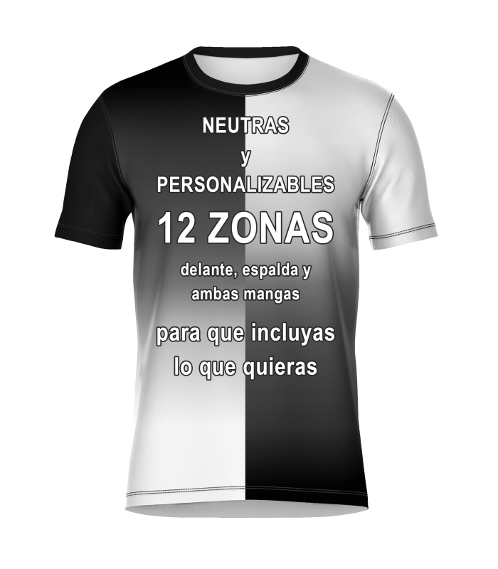 Camiseta ideal para actividades como fútbol. Modelo Frontera de manga corta y con cuello redondo que puedes personalizar hasta en 12 zonas diferentes.