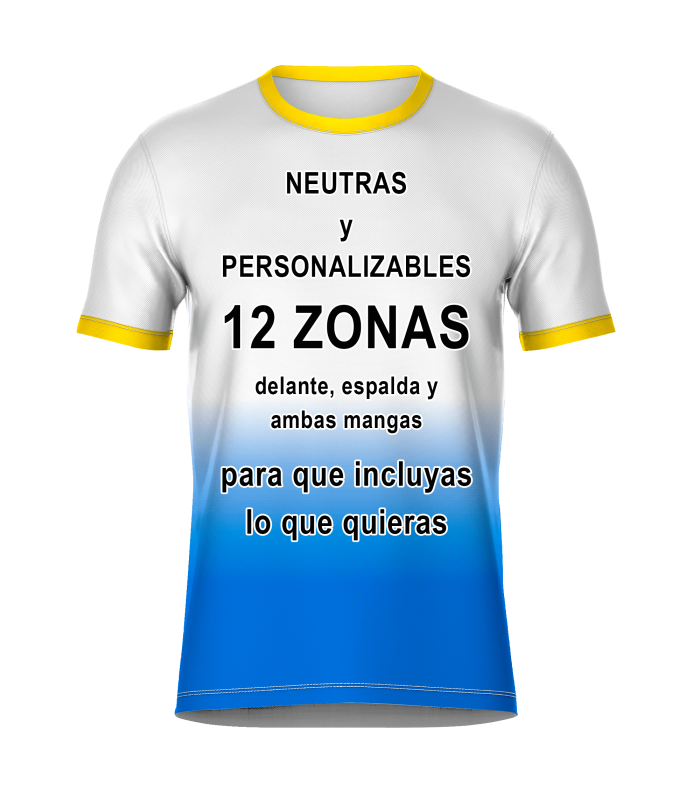 Camiseta ideal para actividades como fútbol. Modelo Ucrania de manga corta y con cuello redondo que puedes personalizar hasta en 12 zonas diferentes.