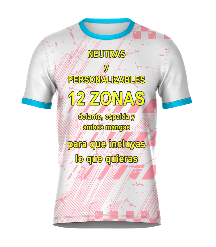 Camiseta ideal para actividades como fútbol. Modelo Mix de manga corta y con cuello redondo que puedes personalizar hasta en 12 zonas diferentes.