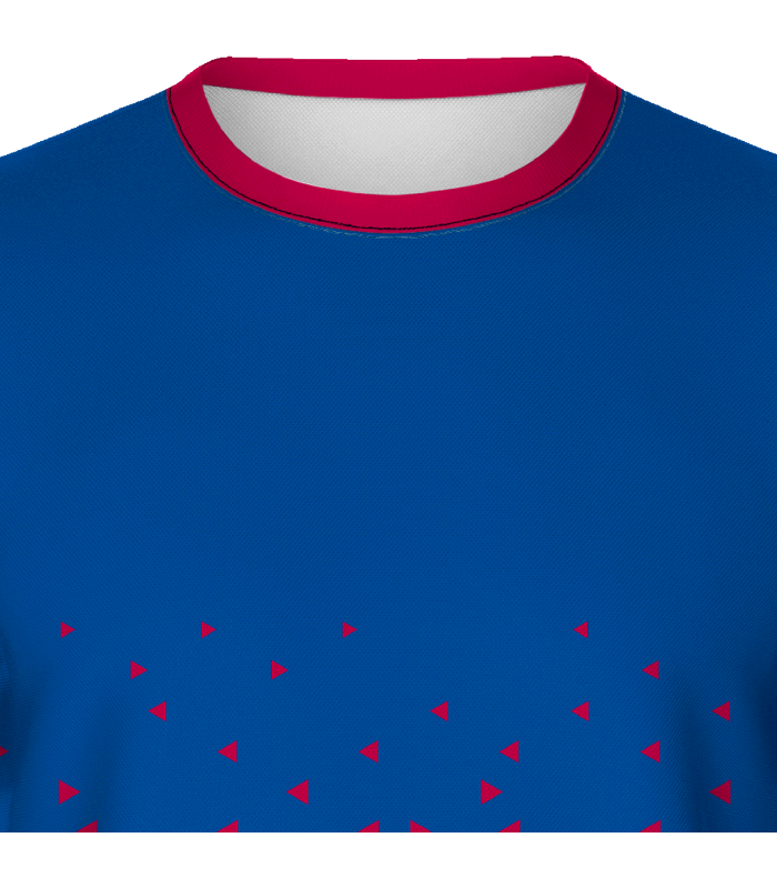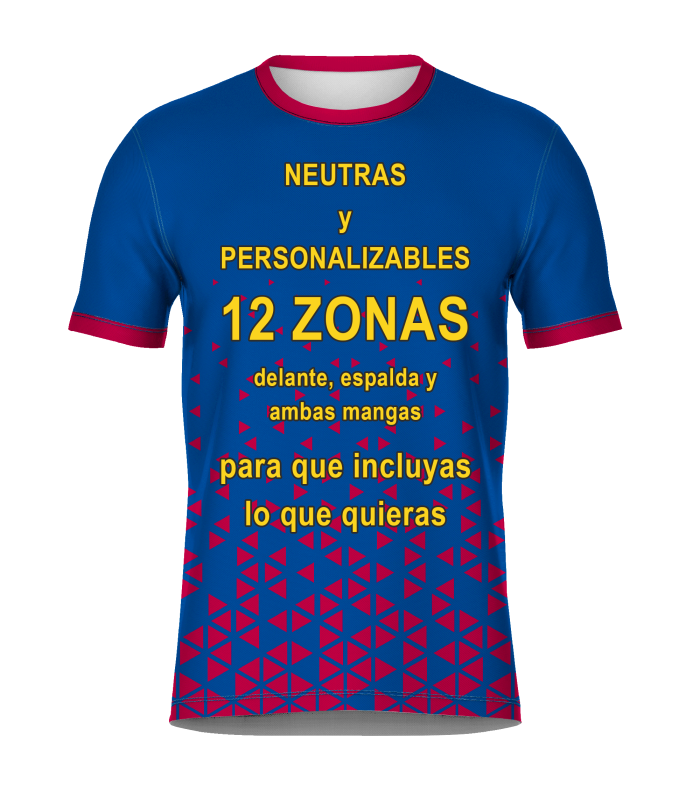 Camiseta ideal para actividades como fútbol. Modelo Triángulos de manga corta y con cuello redondo que puedes personalizar hasta en 12 zonas diferentes.