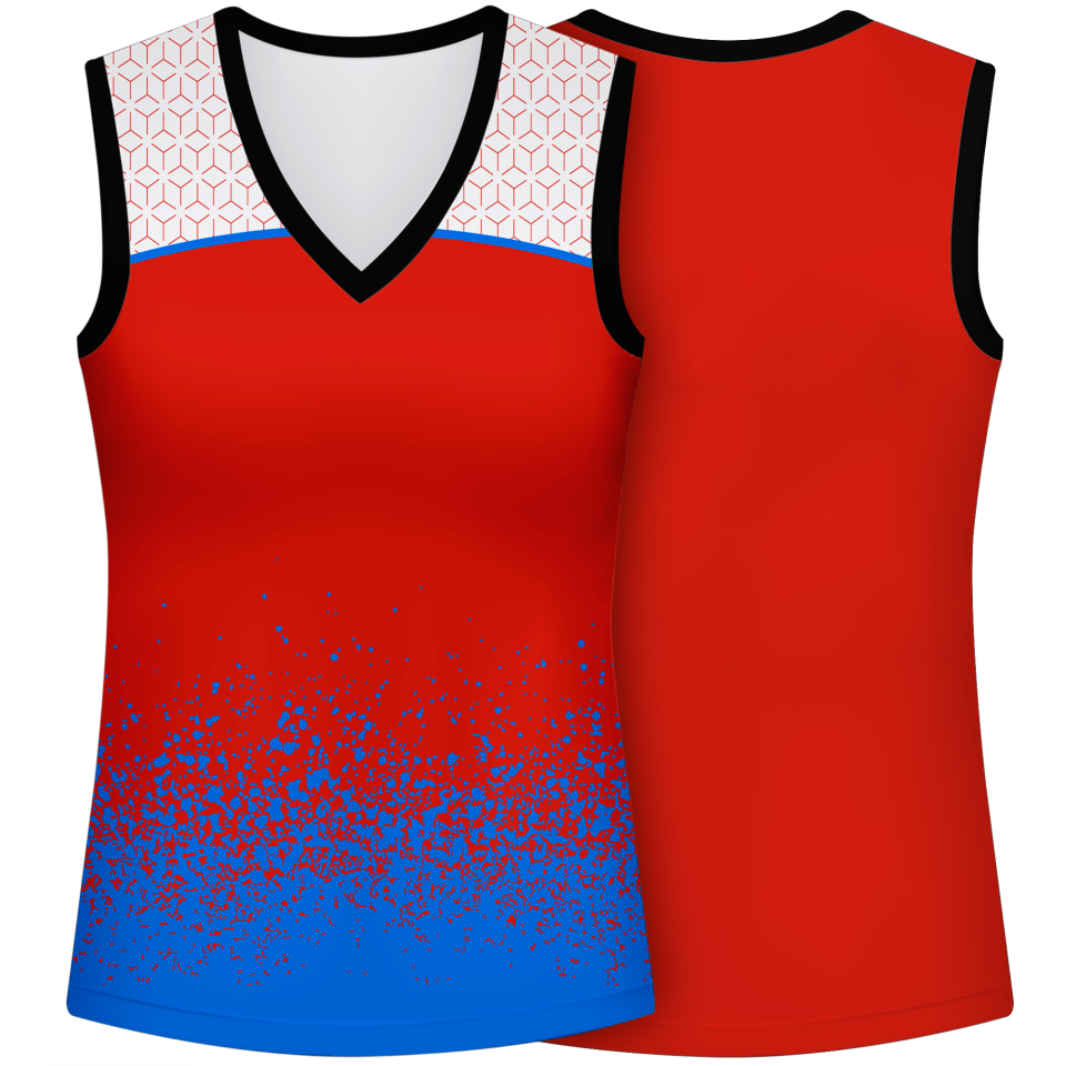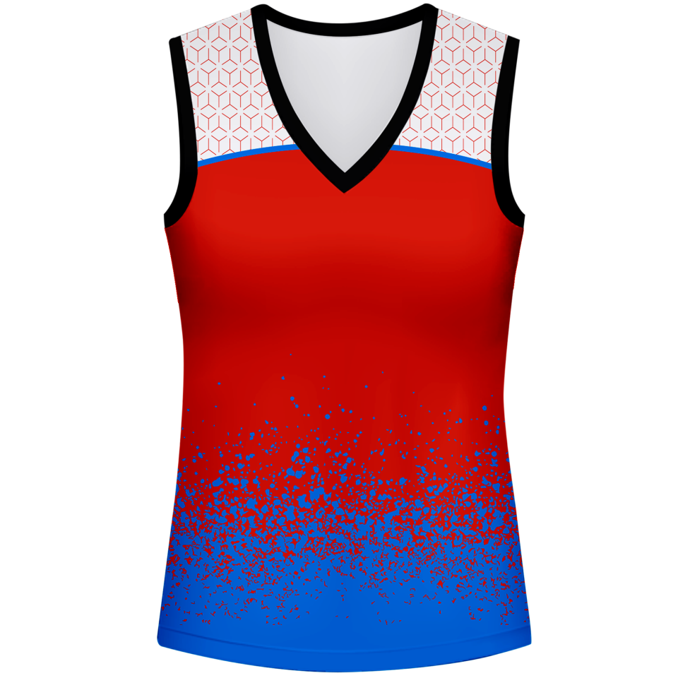 Camiseta de mujer ideal para actividades como voleibol. Modelo Praia sin mangas y con cuello pico que puedes personalizar hasta en 9 zonas diferentes.