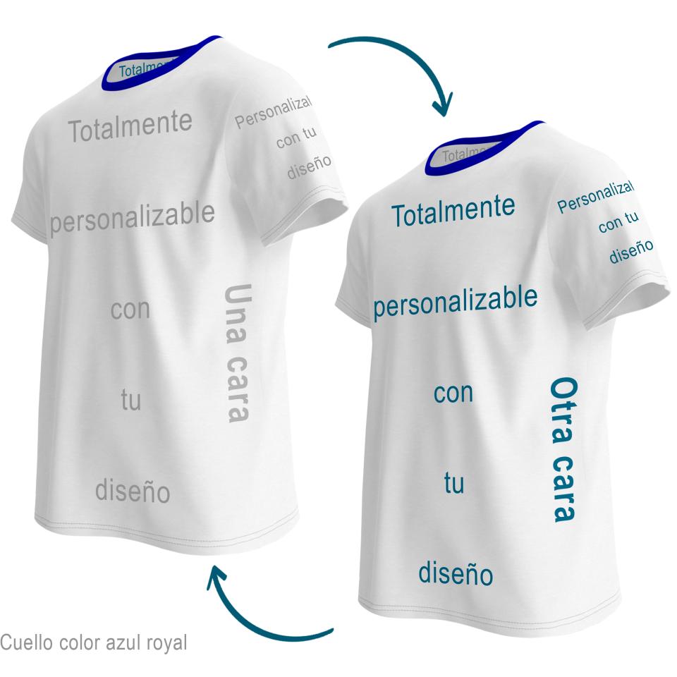 En esta prenda puedes personalizar la totalidad de la parte delantera, trasera y mangas. También podrás escoger el color del cuello