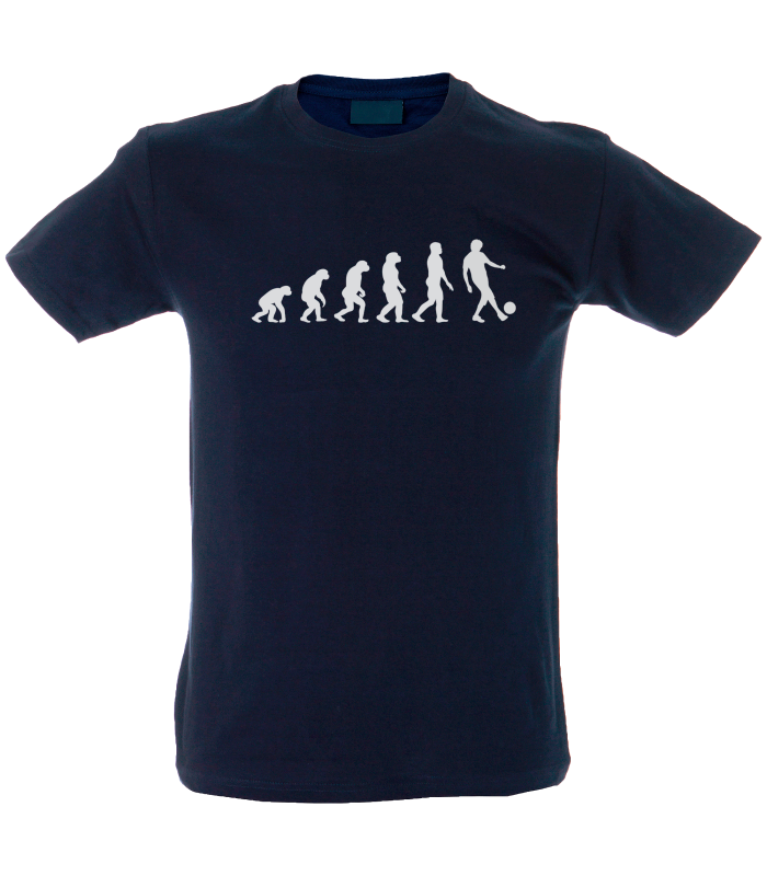 Camiseta hombre de cuello redondo con cinta de refuerzo en el cuello con diseño de evolución mono fútbol