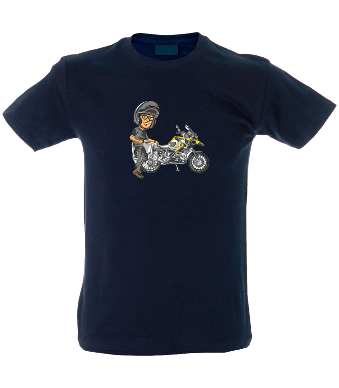 Camiseta hombre de cuello redondo con cinta de refuerzo en el cuello con diseño de kawasaki amarilla