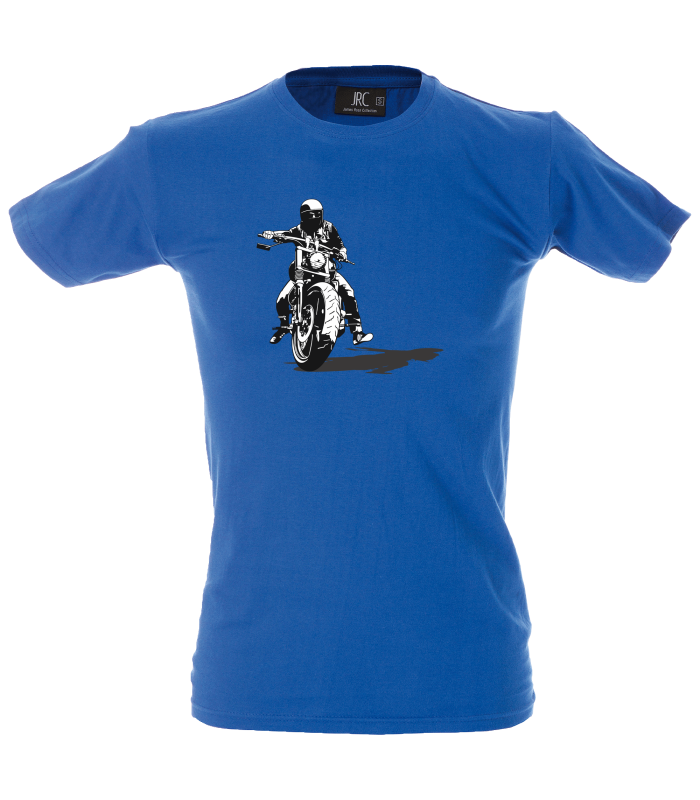 Camiseta hombre de cuello redondo con cinta de refuerzo en el cuello con diseño de motero casco