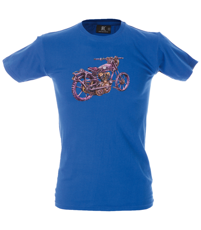 Camiseta hombre de cuello redondo con cinta de refuerzo en el cuello con diseño de moto retro