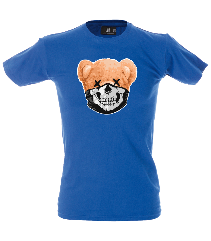 Camiseta hombre de cuello redondo con cinta de refuerzo en el cuello con diseño de oso cubrebocas calavera
