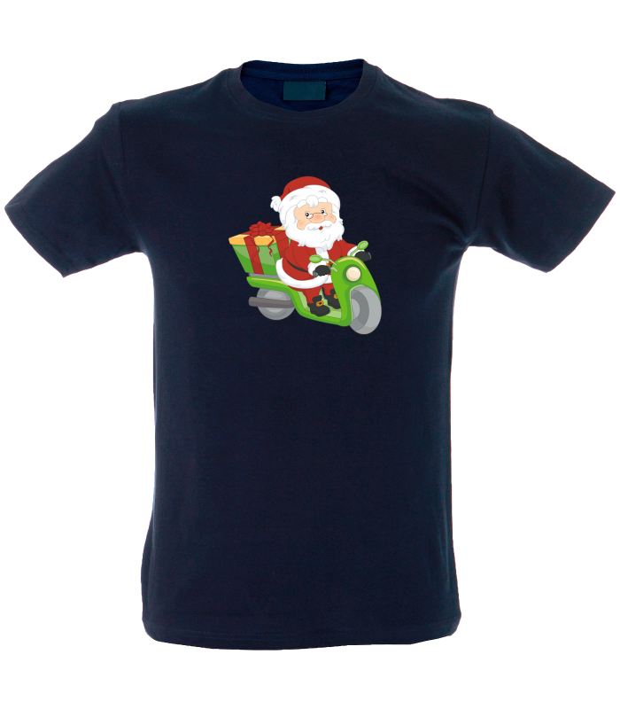 Camiseta hombre de cuello redondo con cinta de refuerzo en el cuello con diseño de noel moto
