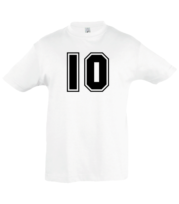 Camiseta de manga corta para niño/a con cuello redondo reforzado con diseño de número 10.