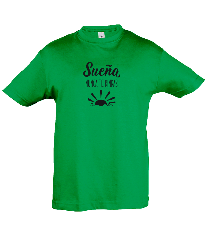 Camiseta de manga corta para niño/a con cuello redondo reforzado con diseño de sueña no te rindas.