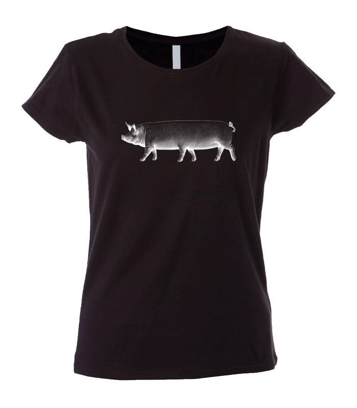 Camiseta mujer de manga corta con cinta de refuerzo en el cuello con diseño de seis patas.