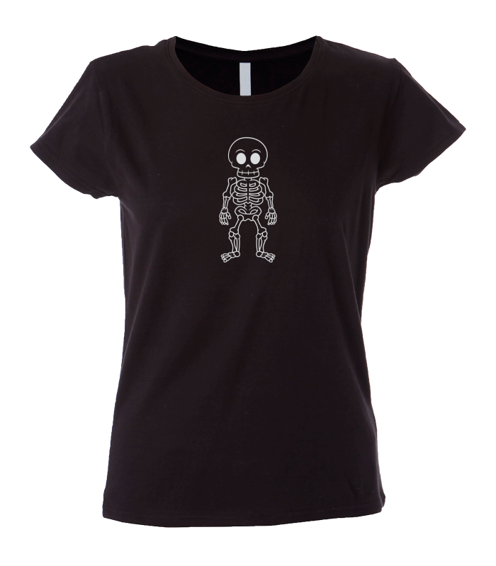 Camiseta mujer de manga corta con cinta de refuerzo en el cuello con diseño de esqueleto linea