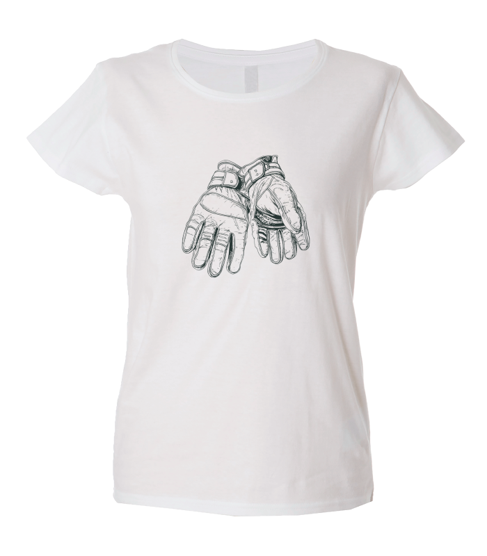 Camiseta mujer de manga corta con cinta de refuerzo en el cuello con diseño de guantes