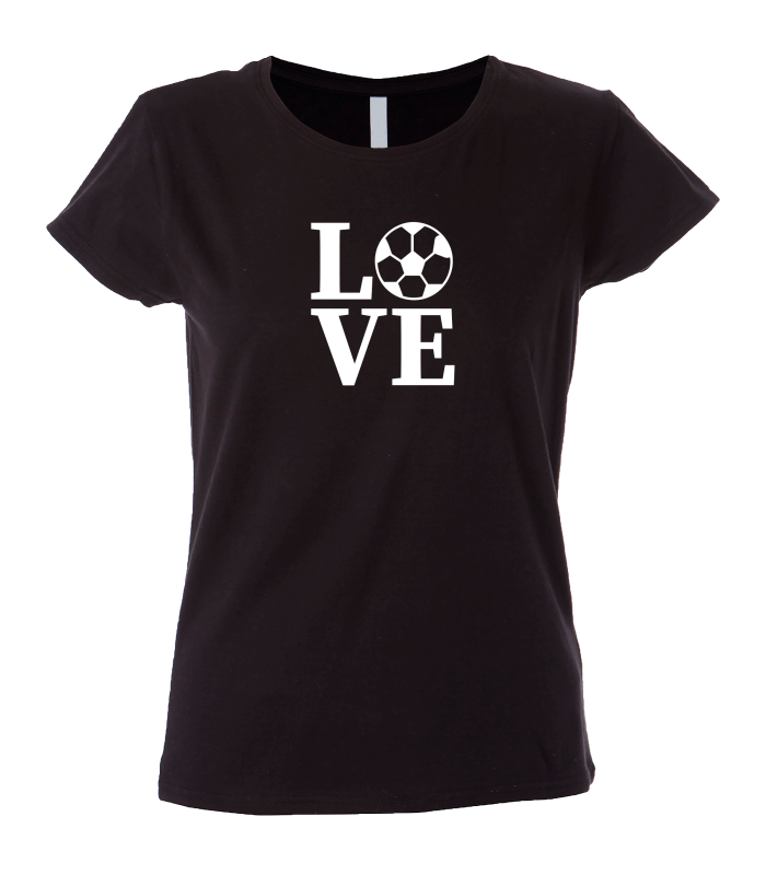 Camiseta mujer de manga corta con cinta de refuerzo en el cuello con diseño de love fútbol