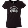 Camiseta mujer de manga corta con cinta de refuerzo en el cuello con diseño de moto retro