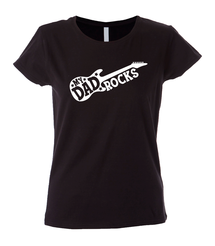 Camiseta mujer de manga corta con cinta de refuerzo en el cuello con diseño de my dad rocks