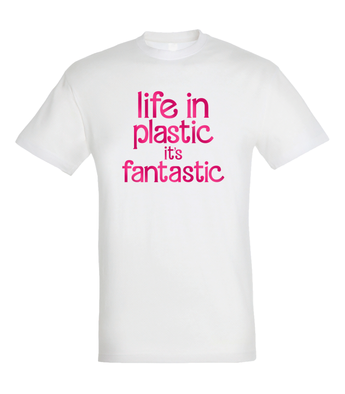 Camiseta algodón unisex Life In Plastic It's Fantastic personalizada Vinilo Eco Fashion Metálico