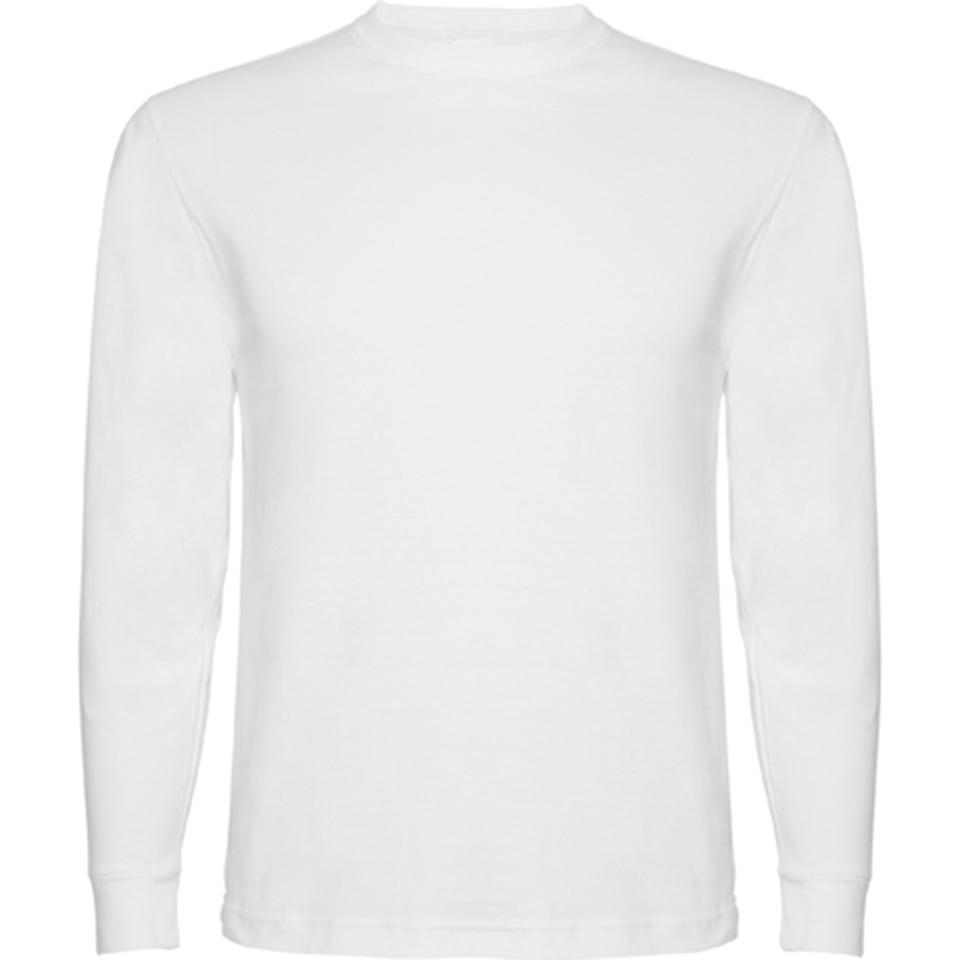 La camiseta de manga larga Roly POINTER está disponible en color blanco. Comprende tallas desde la S a la 3XL Cuenta con tejido tubular, con cuello redondo de 4 capas y puños canalé.