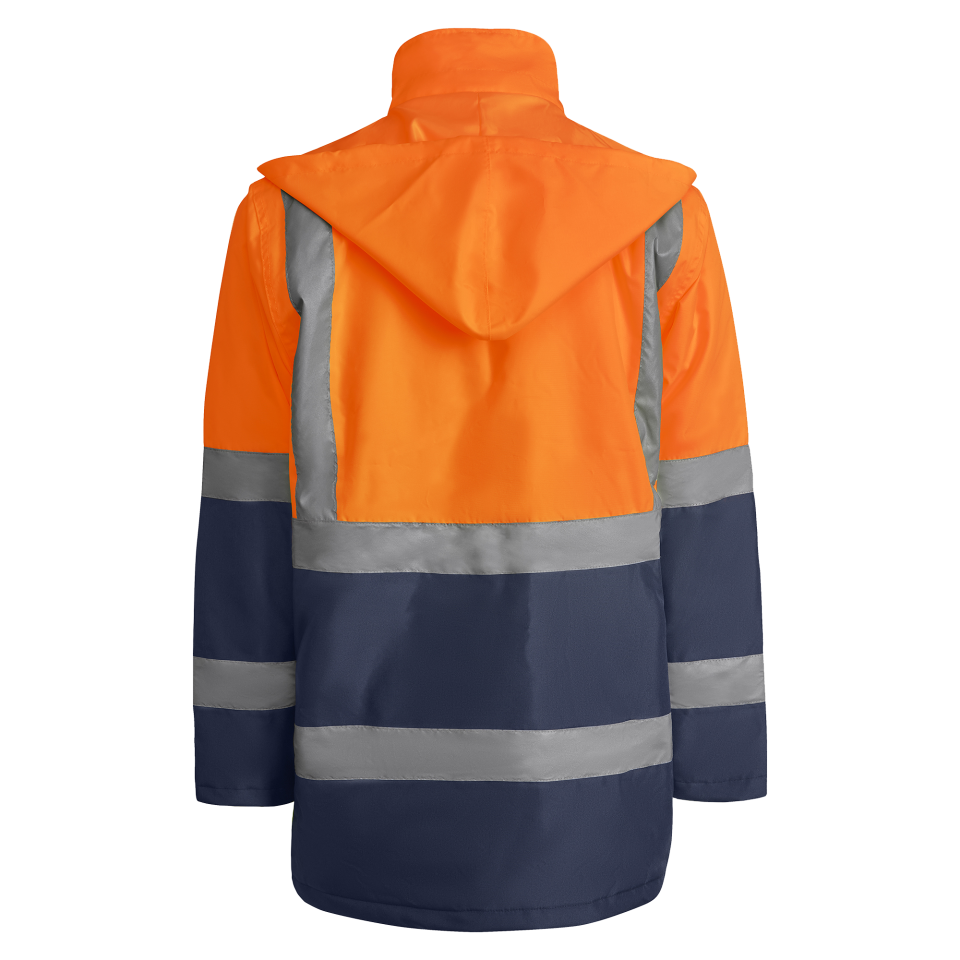 • Dos cintas reflectantes horizontales en torso y mangas y verticales en hombros