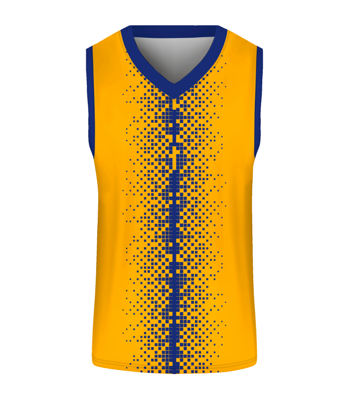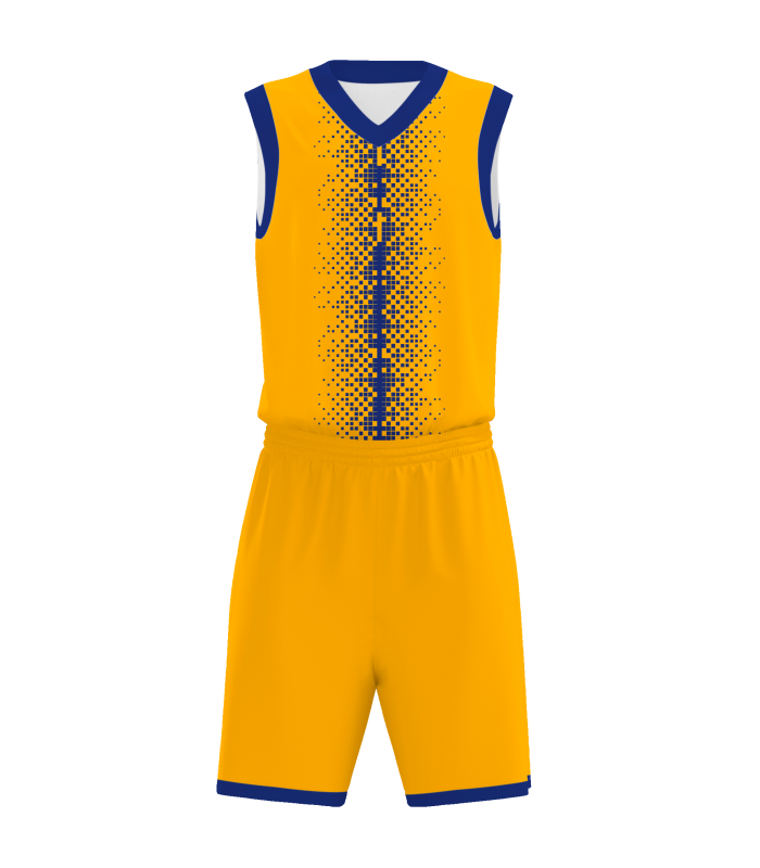 Equipación unisex ideal para actividades como baloncesto. Modelo Pixels con camiseta sin mangas y con cuello en pico y pantalón con cinturilla elástica y raya en el borde de la costura, que puedes personalizar hasta en 14 zonas diferentes.