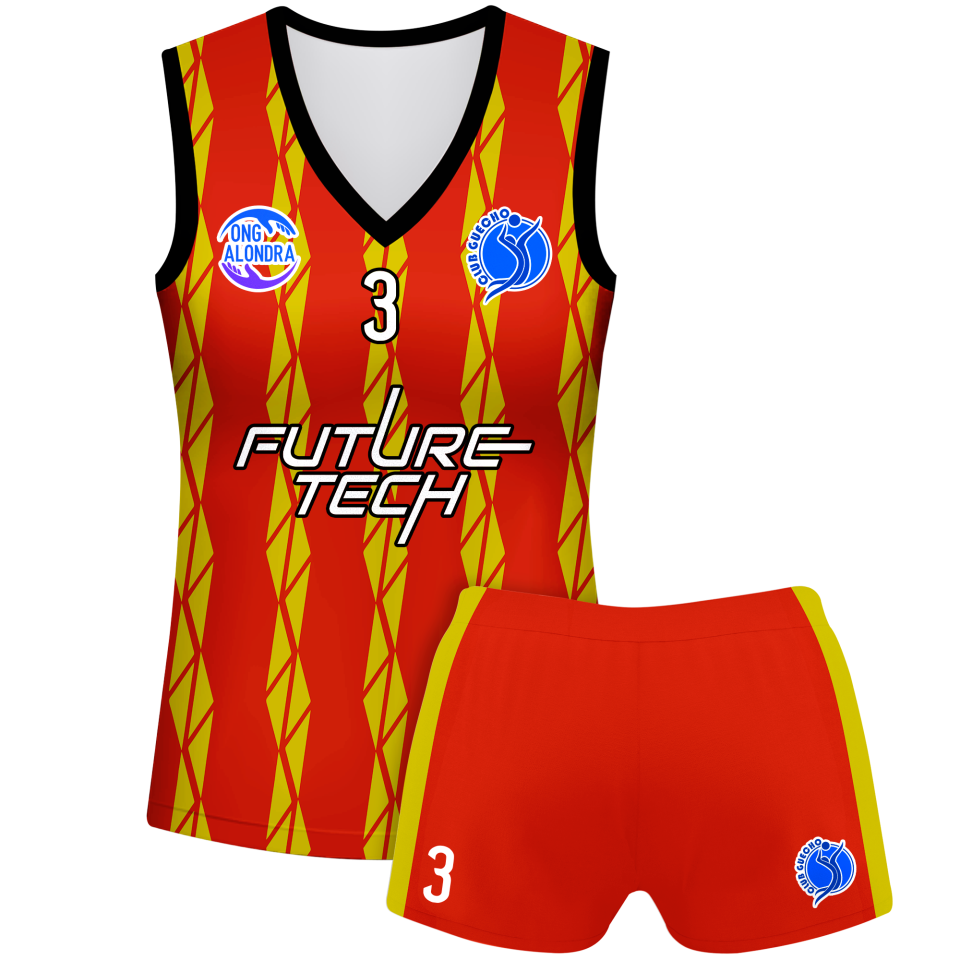 Conjunto de mujer ideal para actividades como voleibol. Modelo Bakú que puedes personalizar hasta en 13 zonas diferentes.