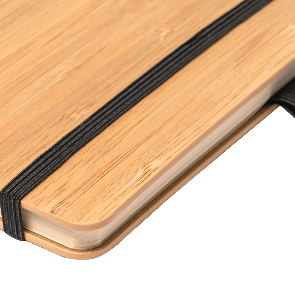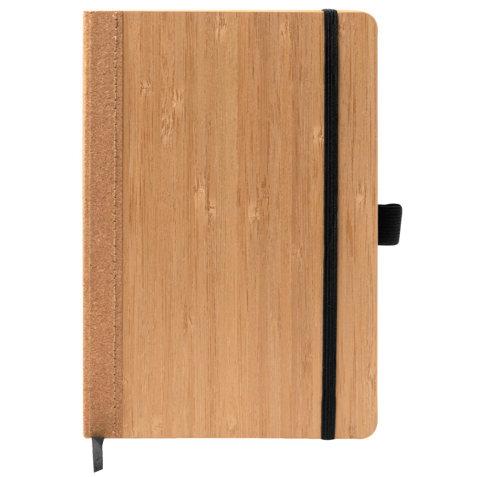 Libreta A5 (14,5x21x1,5 cm) de tapa rígida, realizada con bambú y corcho