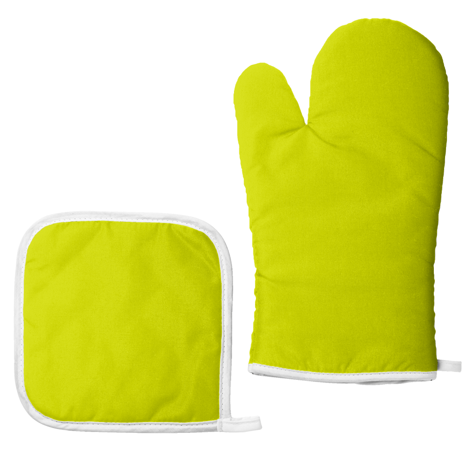 Set de cocina compuesto por agarrador y manopla en suave algodón/poliéster.