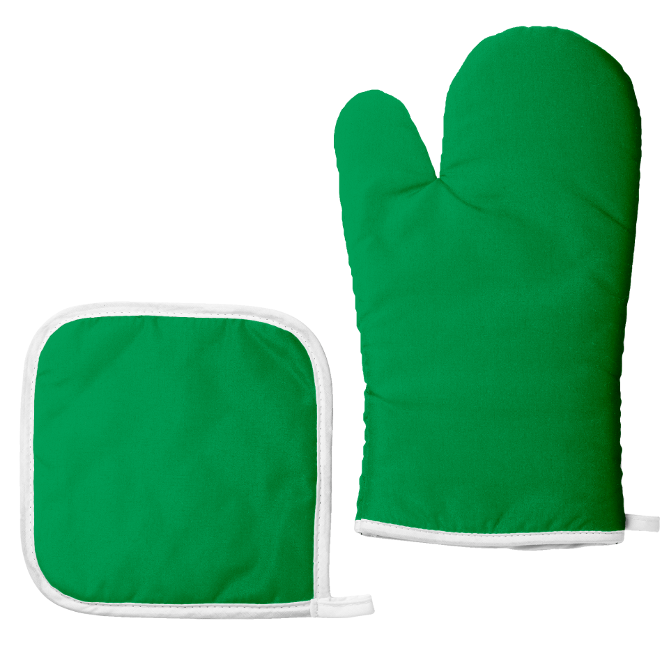 Set de cocina compuesto por agarrador y manopla en suave algodón/poliéster.