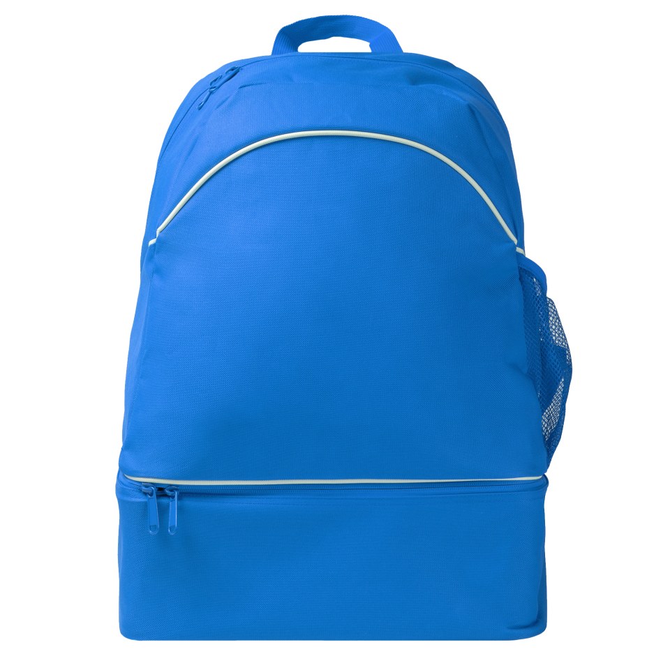 Mochila con cajón zapatillero rígido. Compartimento principal con cremallera y doble tirador y bolsillo interior
