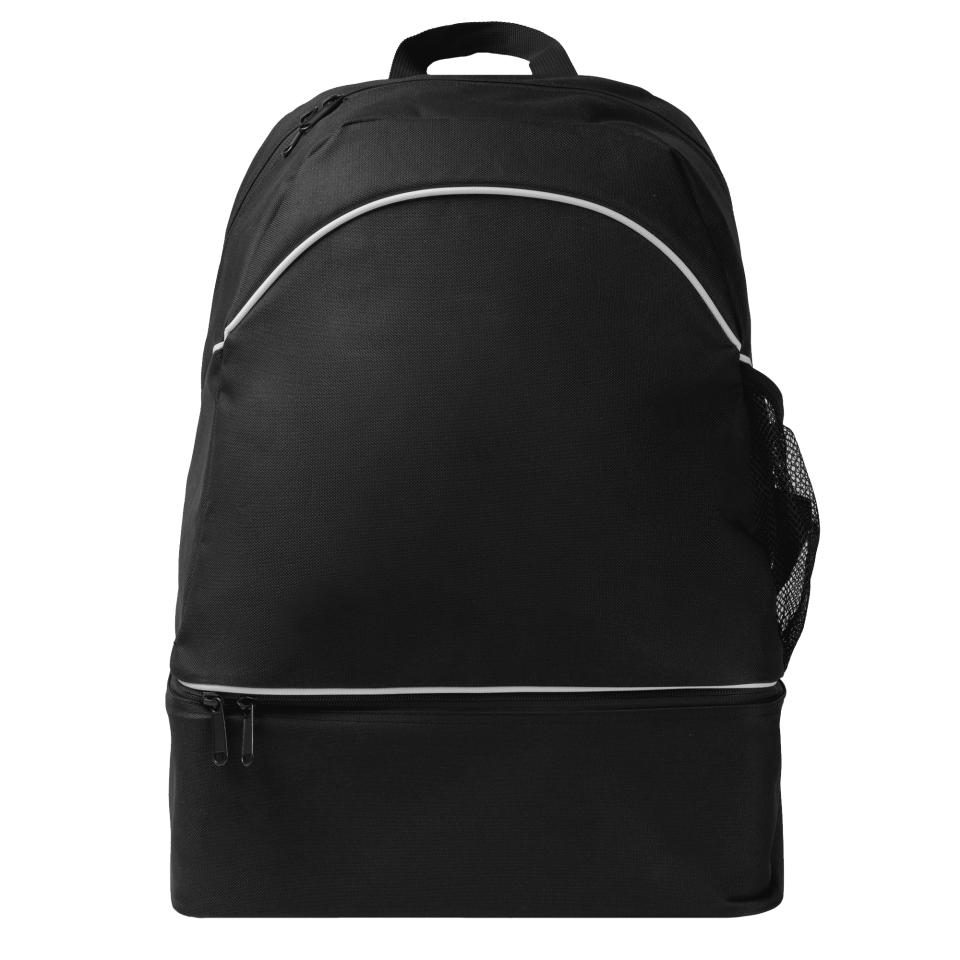 Mochila con cajón zapatillero rígido. Compartimento principal con cremallera y doble tirador y bolsillo interior