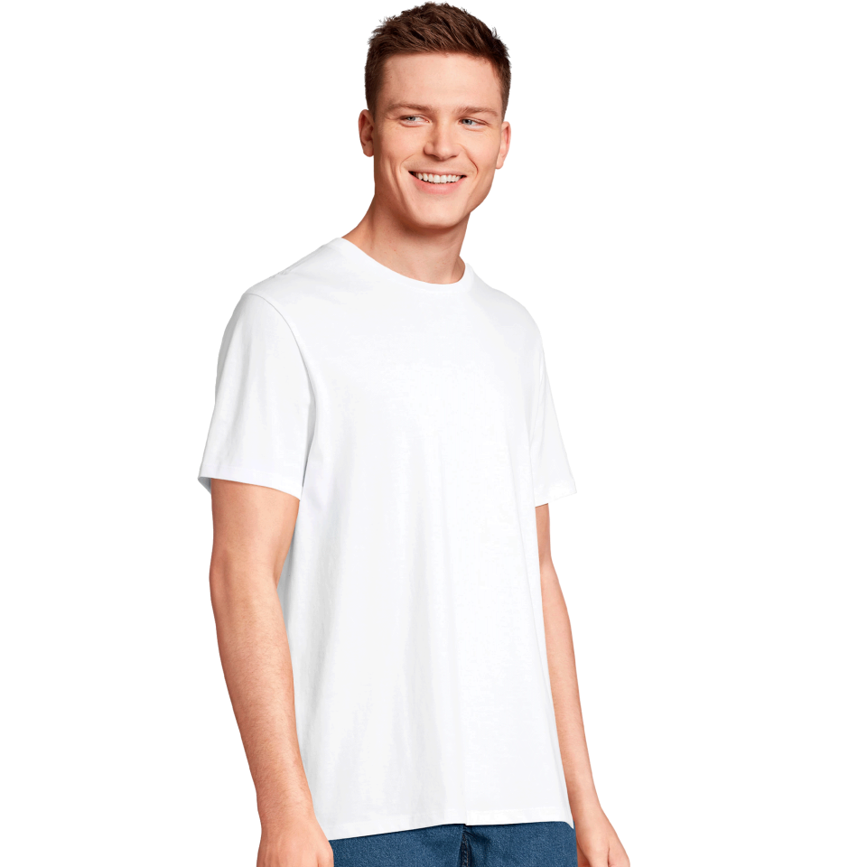 Camiseta cómoda de cuello redondo acanalado, 100% algodón biológico peinado.