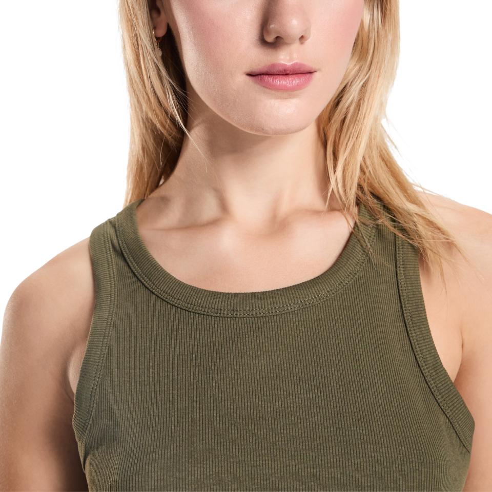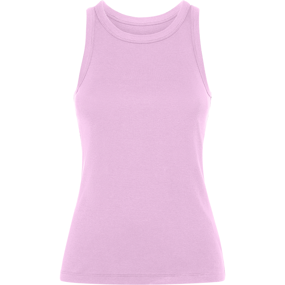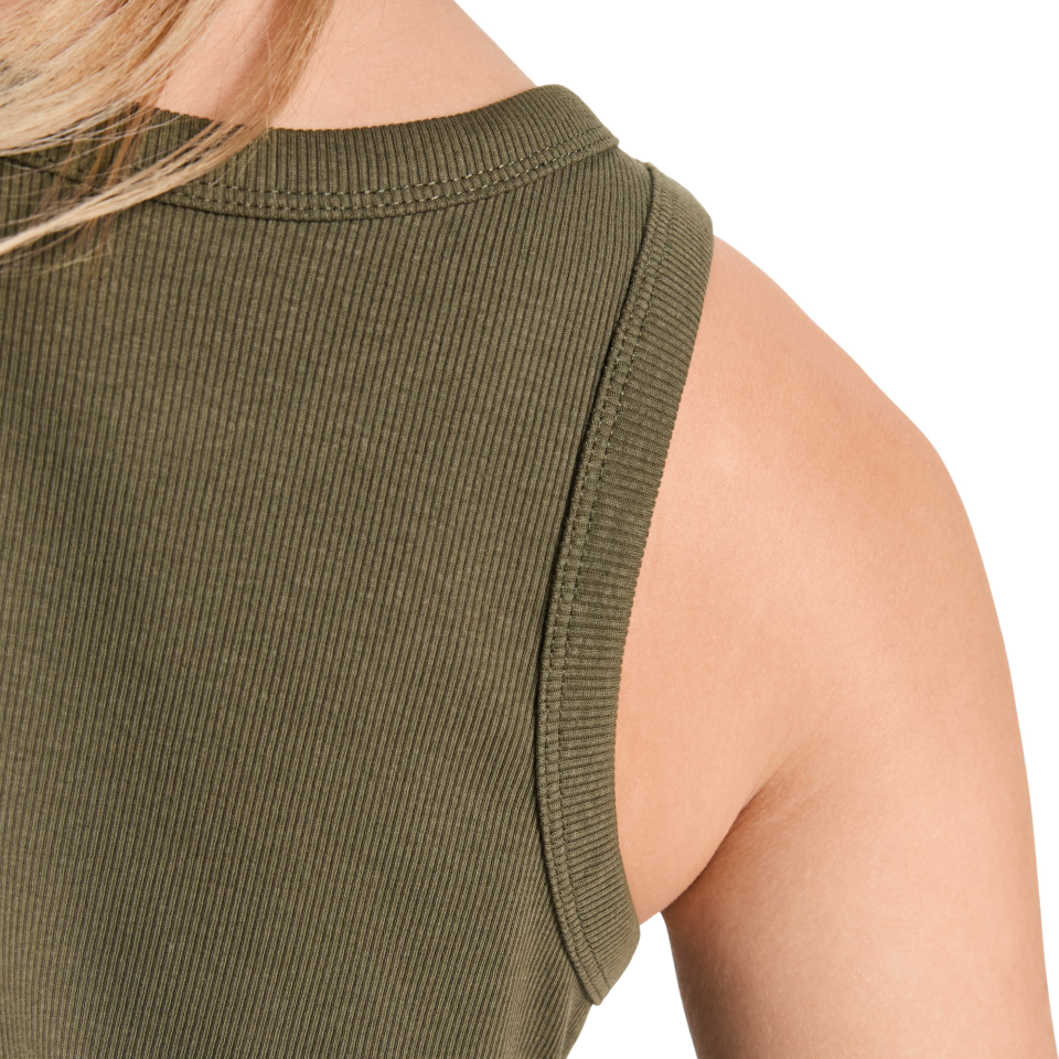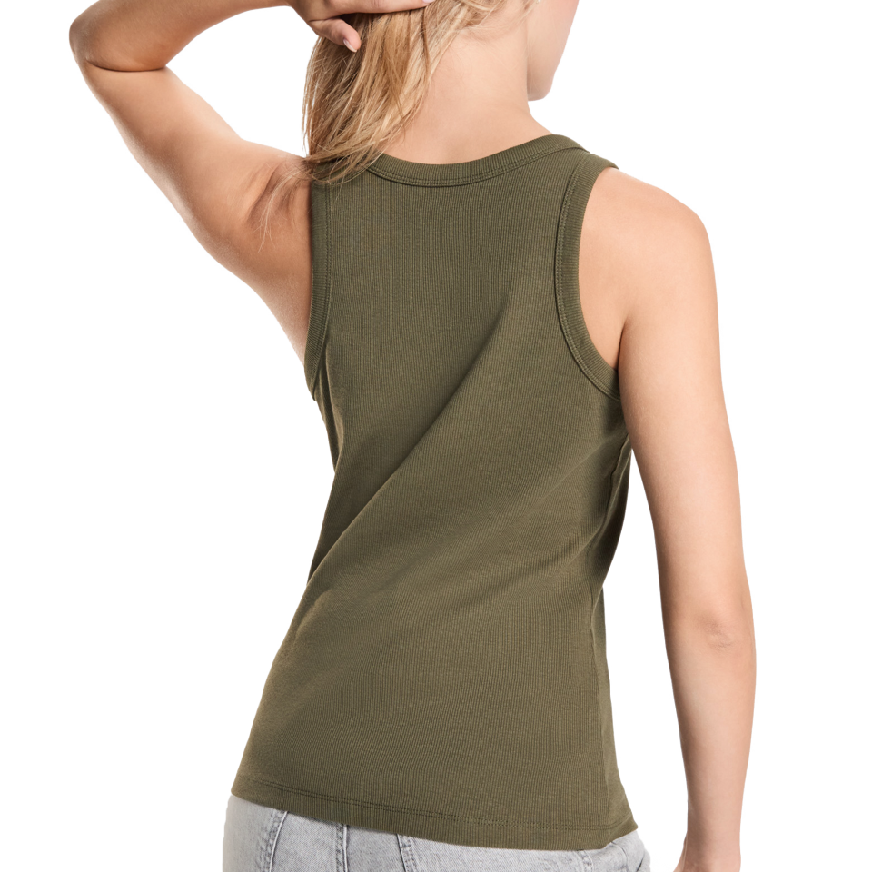 Camiseta sin mangas en punto canalé, cuello y sisas con vivo ancho del mismo tejido