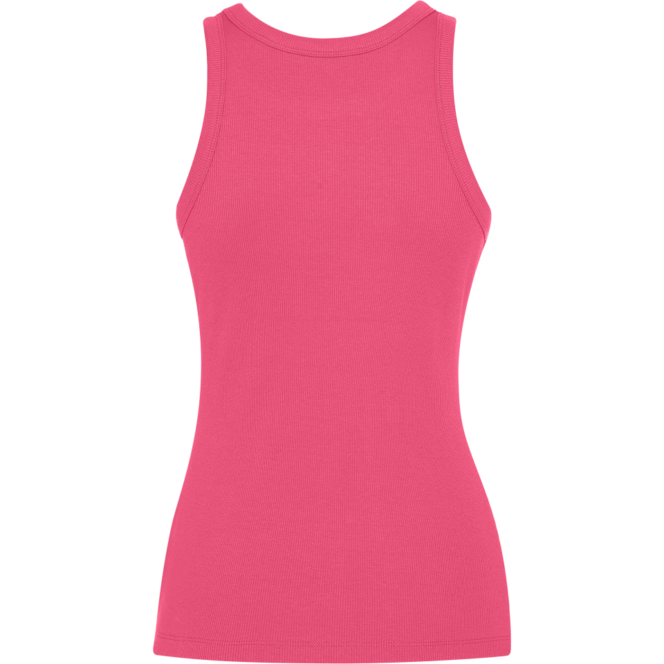 Camiseta sin mangas en punto canalé, cuello y sisas con vivo ancho del mismo tejido