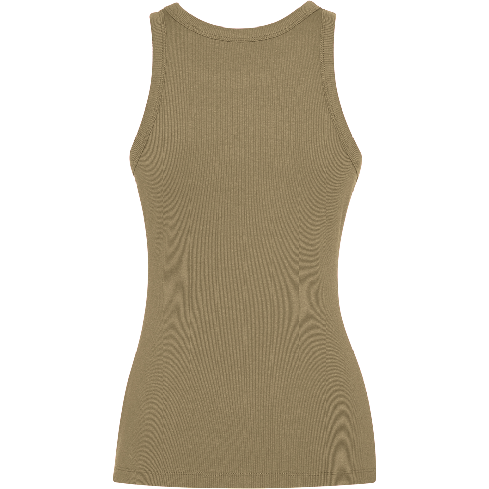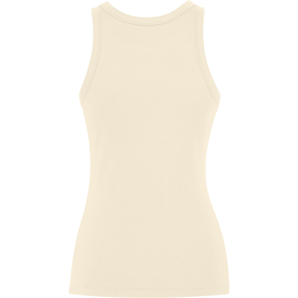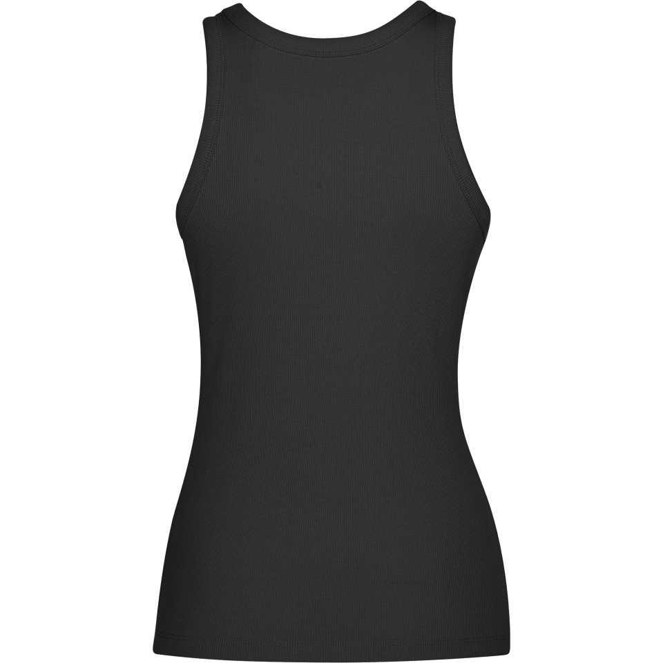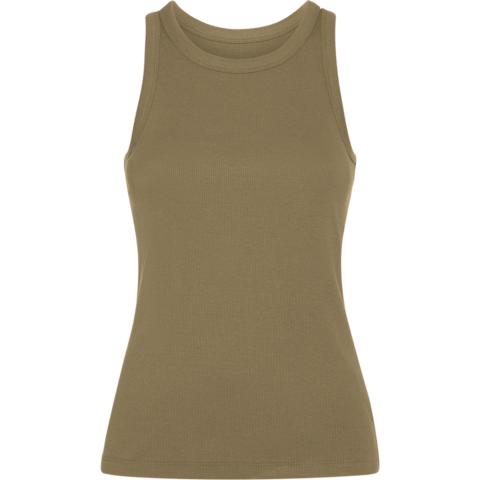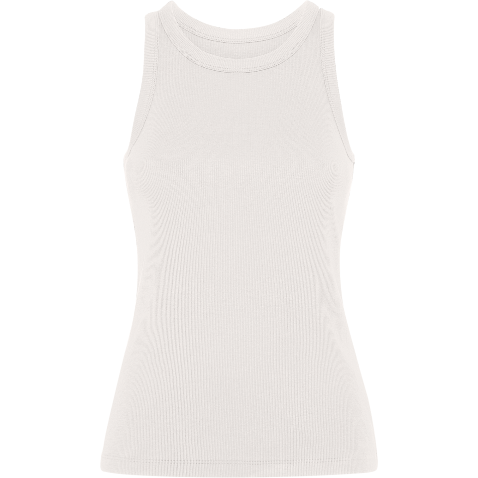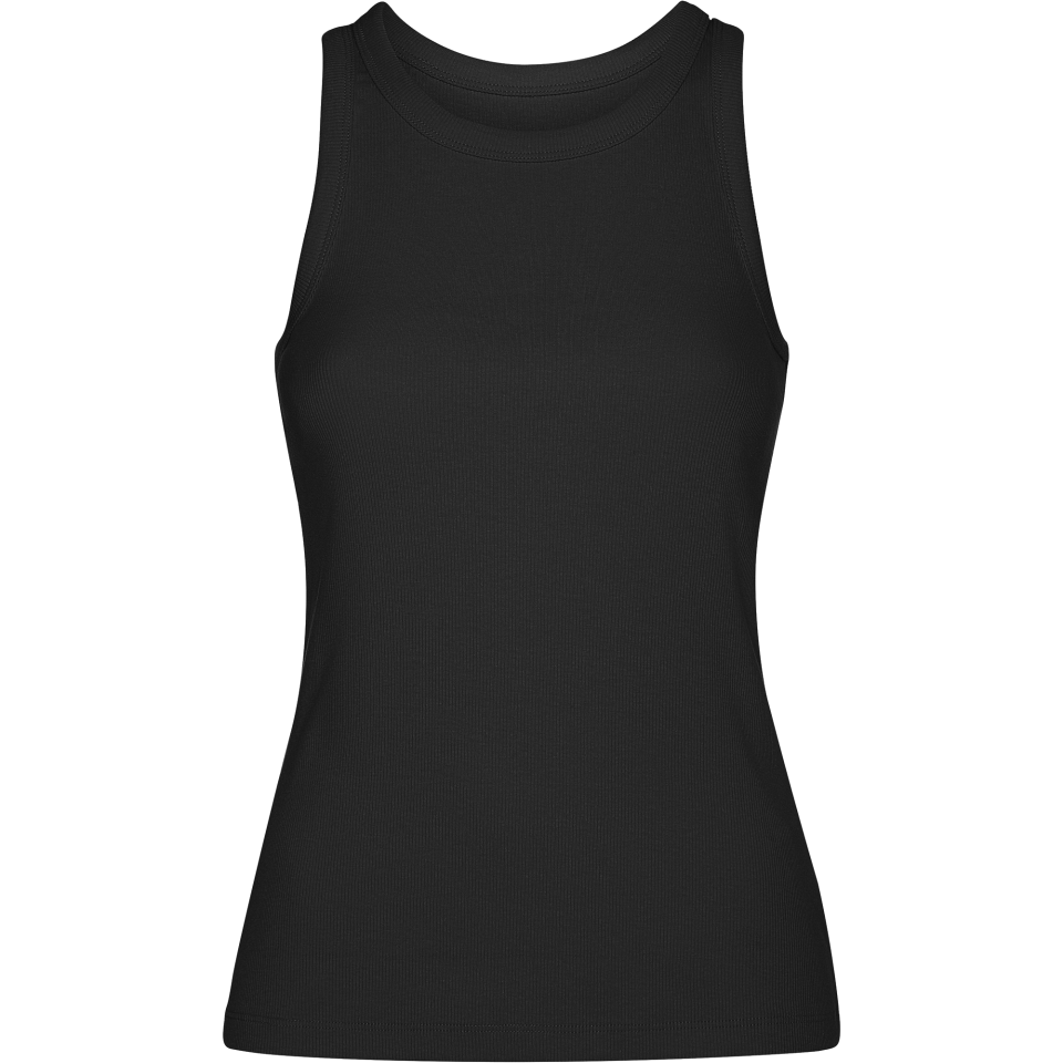 Camiseta sin mangas en punto canalé, cuello y sisas con vivo ancho del mismo tejido