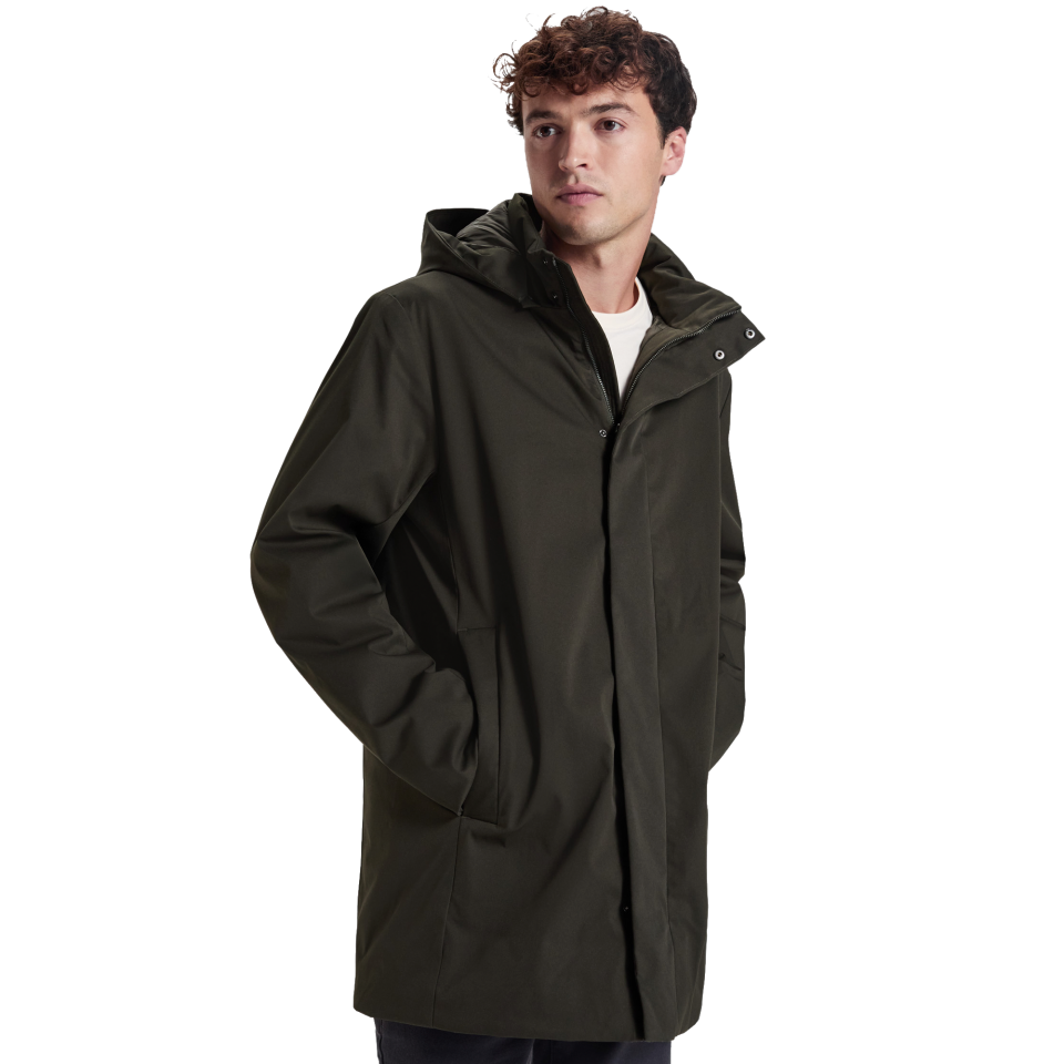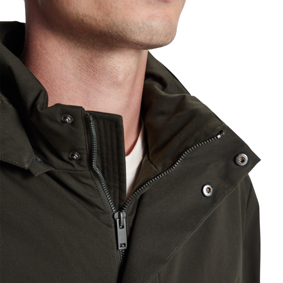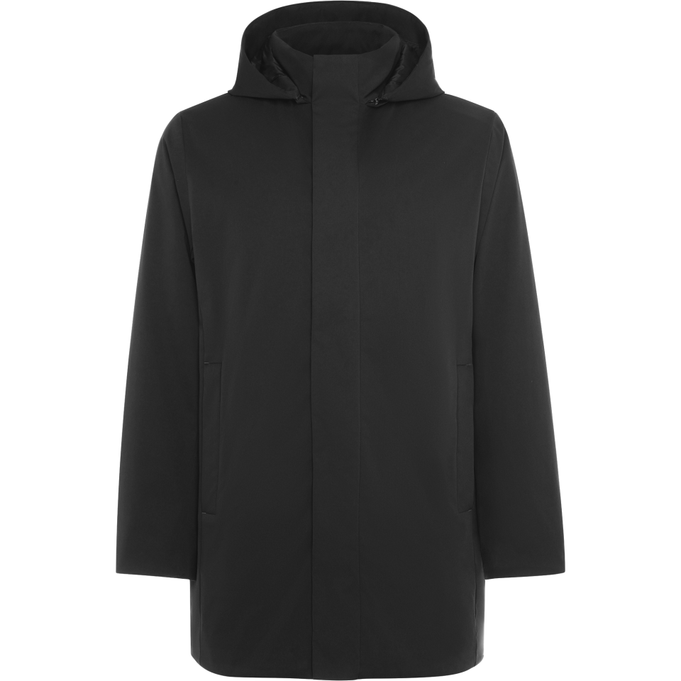 • Cuello alto y capucha extraíble mediante cremallera