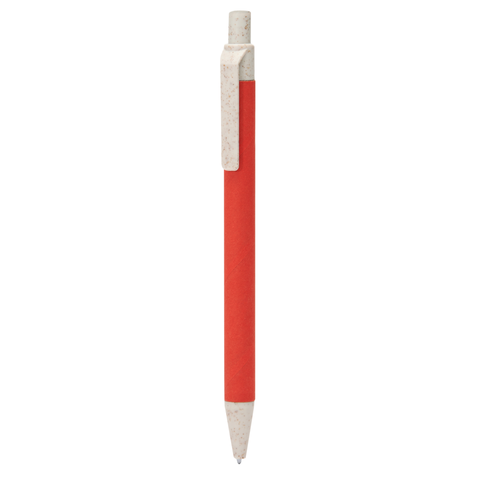 Bolígrafo pulsador hecho en cartón reciclado, con la punta y el clip en fibra de trigo y ABS.
