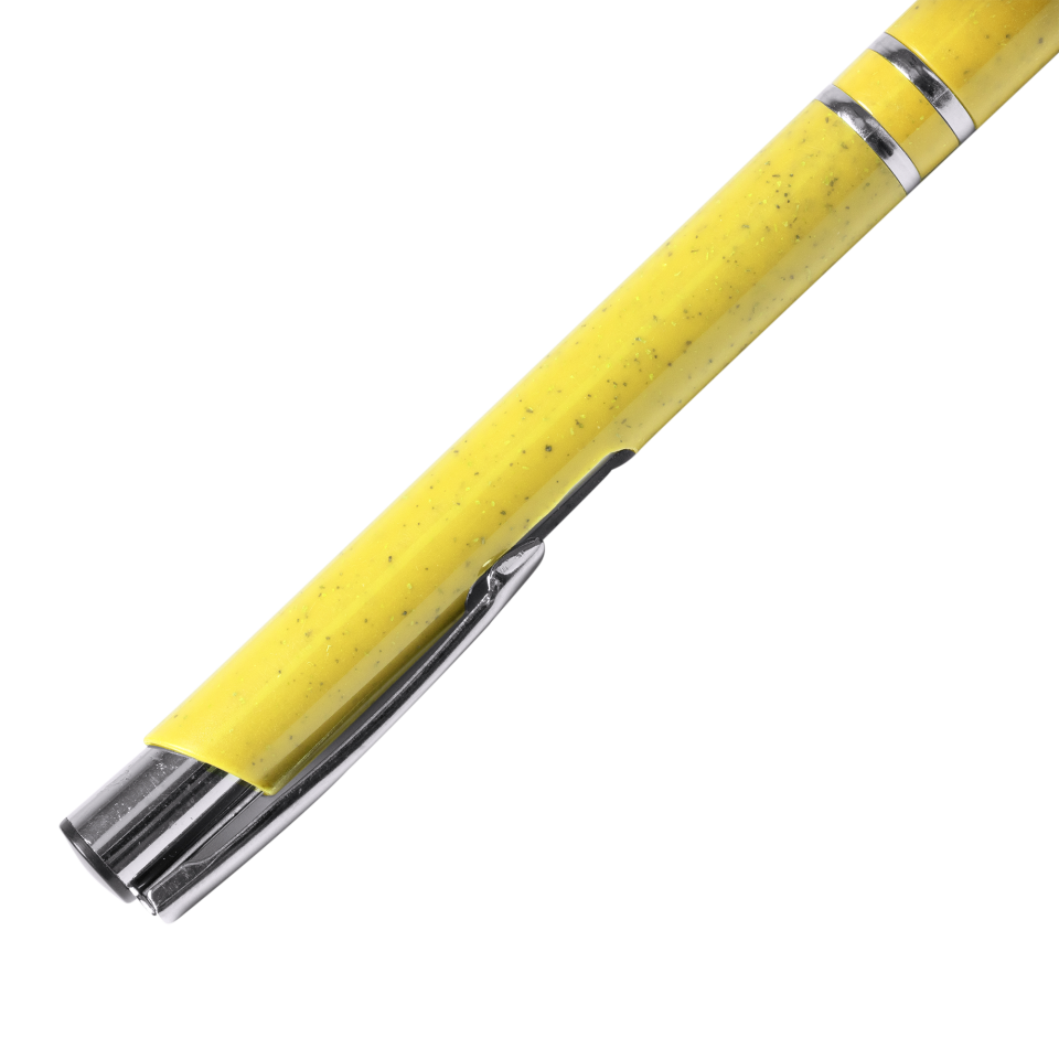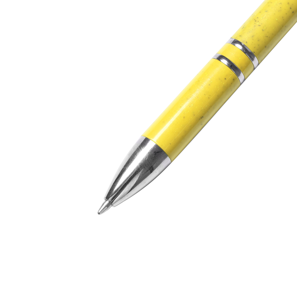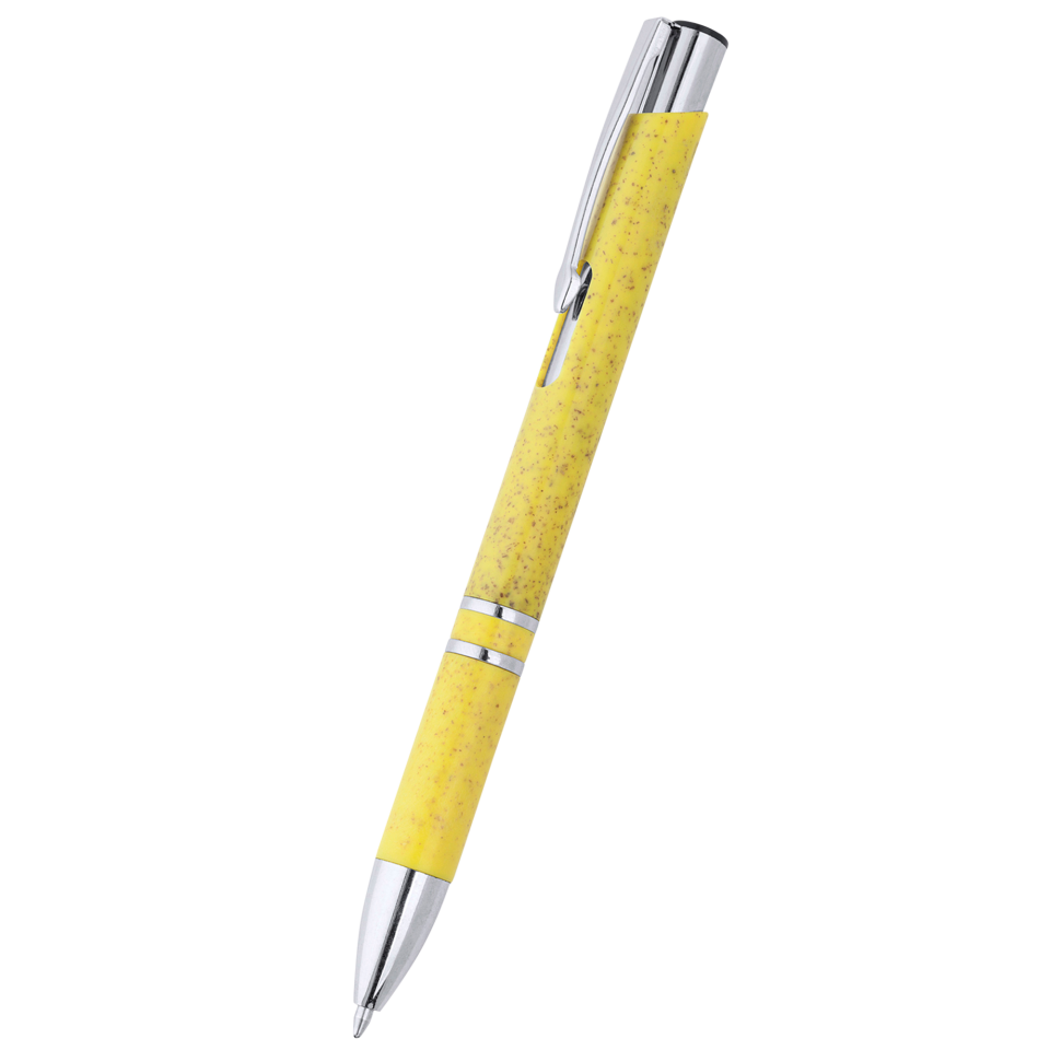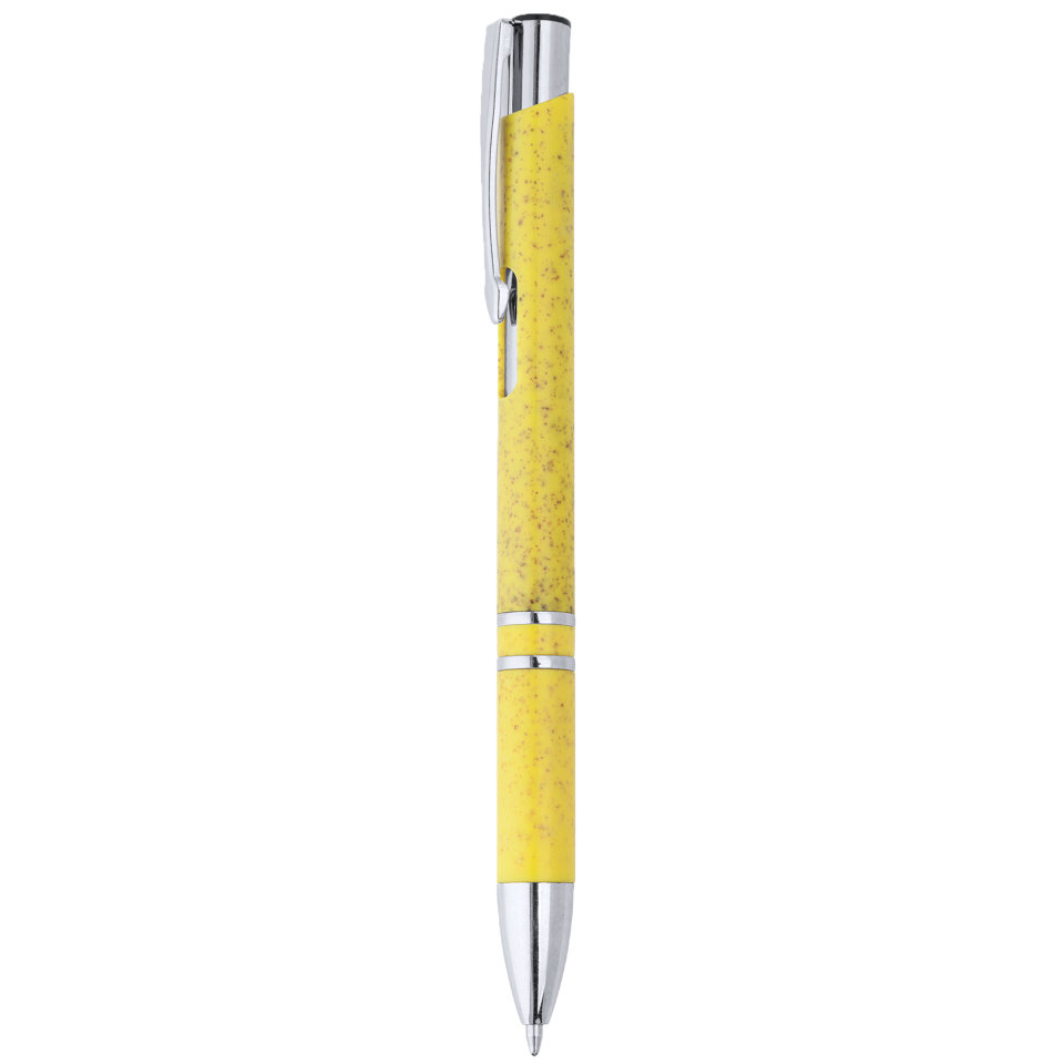 Bolígrafo pulsador de fibra de trigo y ABS con acabados plateados