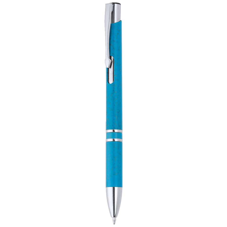 Bolígrafo pulsador de fibra de trigo y ABS con acabados plateados