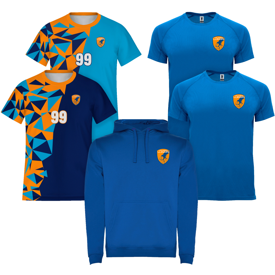 El pack inclou: Dues samarretes de competició, dues samarretes d'entrenament i una dessuadora