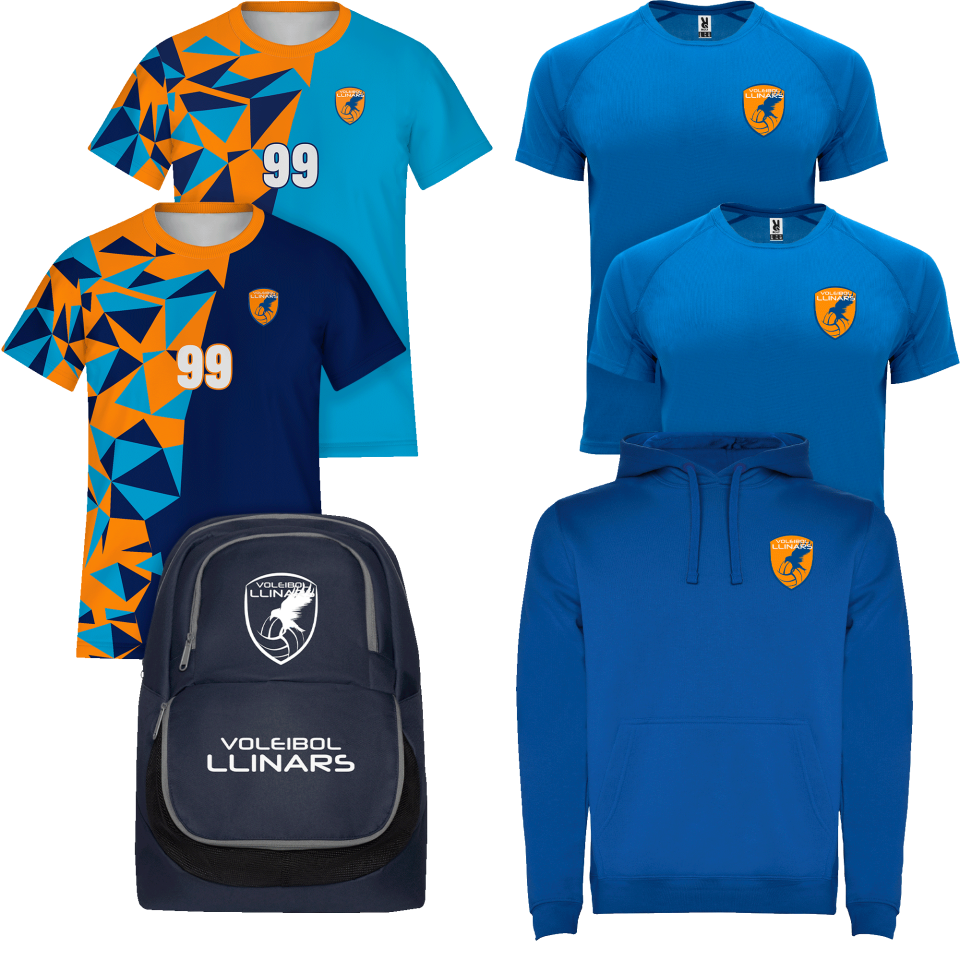 El pack inclou: Dues samarretes de competició, dues samarretes d'entrenament, una dessuadora i una motxilla