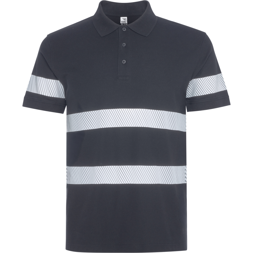 Polo manga corta con bandas reflectantes de alta visibilidad y tratamiento antipilling