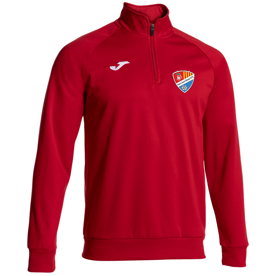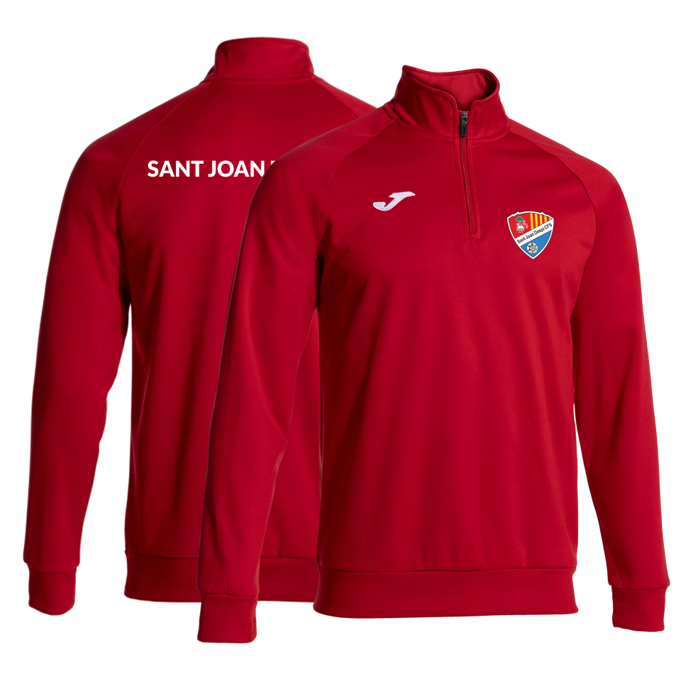 Dessuadora 100% polièster de coll alt amb mitja cremallera per protegir del fred. Baixos i punys en rib que proporcionen un ajust òptim i eviten l'entrada de fred sense limitar els moviments del jugador gràcies a la flexibilitat del material.