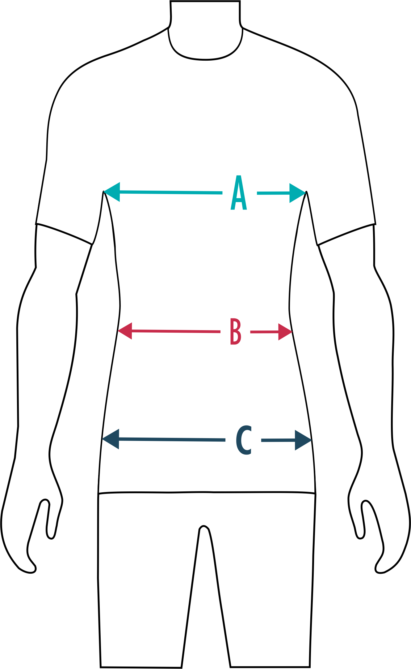 | Talla | Pit A (cm) | Cintura B (cm) | Maluc C (cm) |